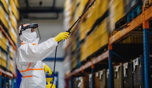 물품 접촉 빈도가 높은 구역, 운반 장비, 작업대 등을 정기 소독하여 세균·바이러스 확산 최소화
