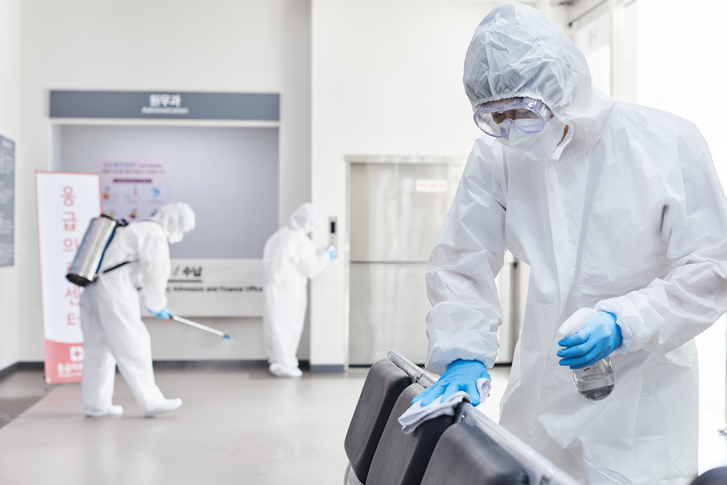 – 병실, 대기실, 화장실, 검사실 등 환자·직원이 자주 접촉하는 공간 정기 소독